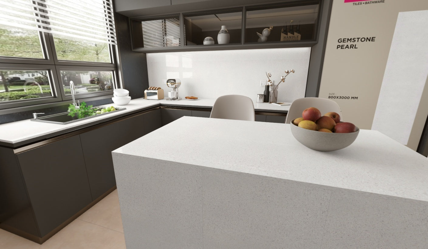Piedra Sinterizada Pulido 80x260 Espesor 15mm Pearl - Varmora GemStone