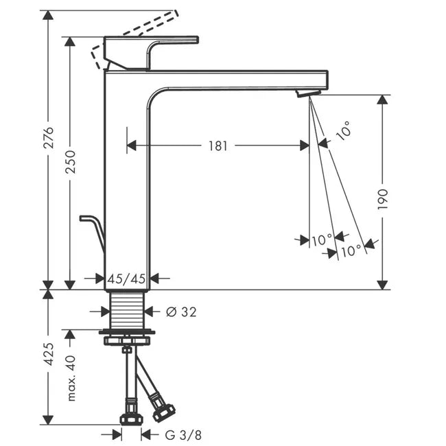 - Altura del caño: 190 mm
